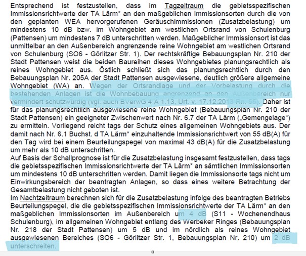 Und darum ist es auch ausreichend, wenn die strengeren Schallschutzwerte zur Nachtzeit lediglich um 4 bzw. 2 dB unterschritten werden. Wir sind der Meinung, dass das eine „knappe“ Sache wird. Und im Interesse der Betroffenen hoffen wir, dass es eben nicht auf ein „Gesause und Gebrause“ hinausläuft!
