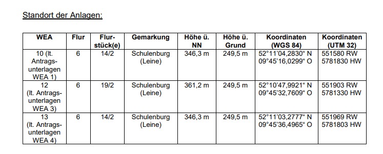 Weil in unmittelbarer Nähe bereits WKA existieren, ist das Ortsrandgebiet Schulenburg weniger schutzwürdig. Wie bitte? DAS hat bisher so niemand gesagt!